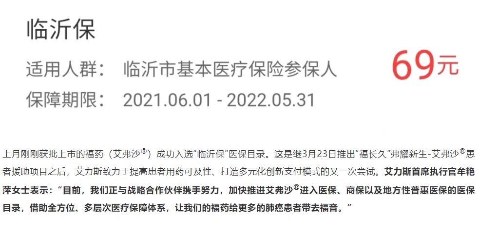 4月13日,山东省临沂市医保参保人专属的普惠型补充医疗保险“临沂保”正式上线。一年仅需69元,即可获得最高200万的医疗费用保障,尤其在重特大疾病医疗费用方面,可大幅降低医保报销范围内个人自付费用比例,极大地减轻人民群众经济负担。
